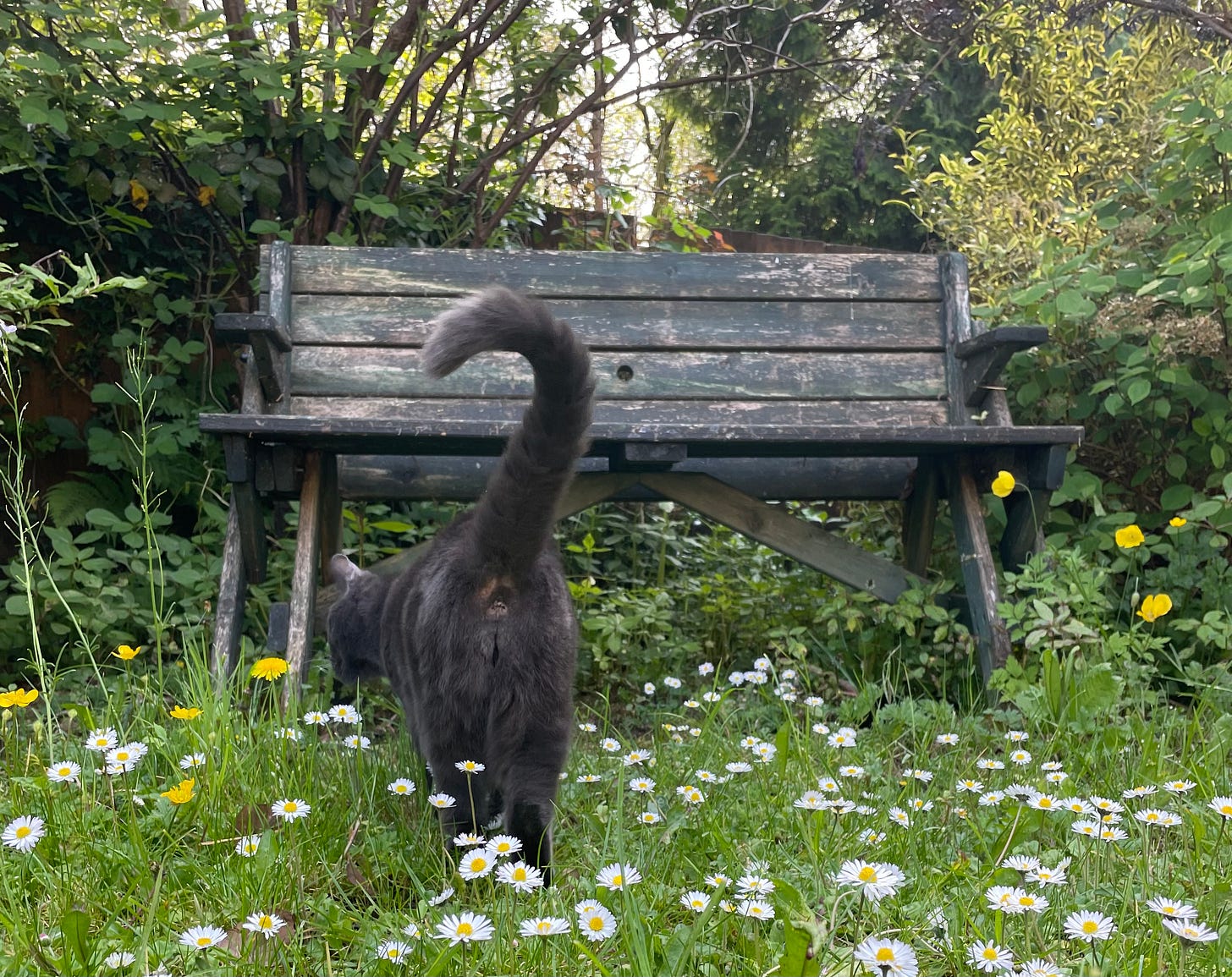 You might think the solution to all this is to just stop Sooty going out, but she pulls all her fur out when we try to keep her in the house and, as she didn’t ask to be born or indeed to live with us, I don’t think it’s fair to keep her in distress. I also don’t think that would solve the wider problem of making sure people connect with nature in a meaningful way. It would just make my cat sad, which would, indeed, make me sad. I wonder if cats can understand the pain of others. Maybe they’re like us and most of them can only really empathise with other mammals. Maybe if I got my mother to dress up like a big dragonfly, Sooty would begin to see them as her kin, and stop breaking their tiny spines. I don’t think they have spines, actually. I think they have exoskeletons. But you know what I mean.